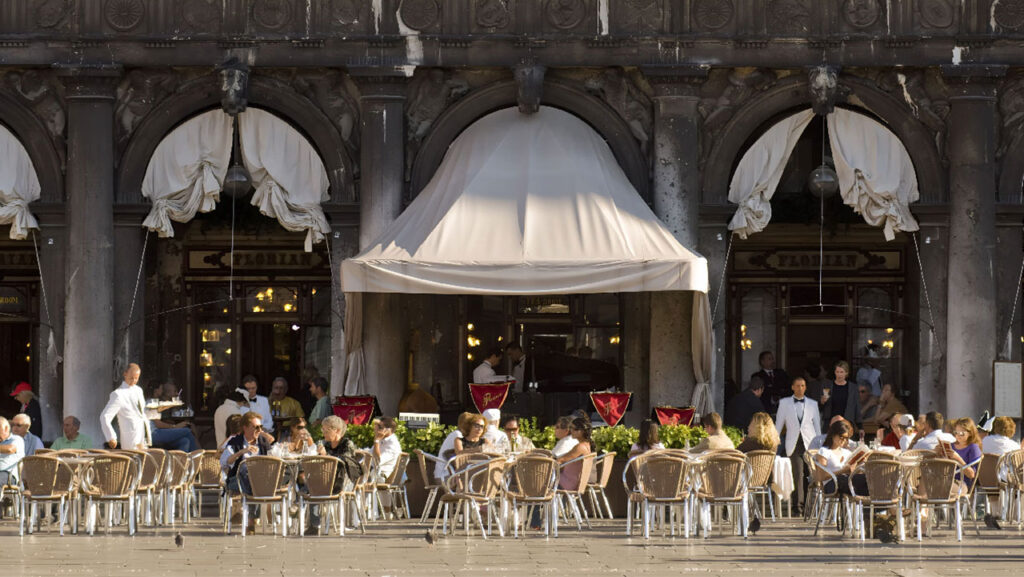 Caffè Florian is a historic café in the city of Venice, located under the arcades of the Procuratie Nuove in St. Mark’s Square.